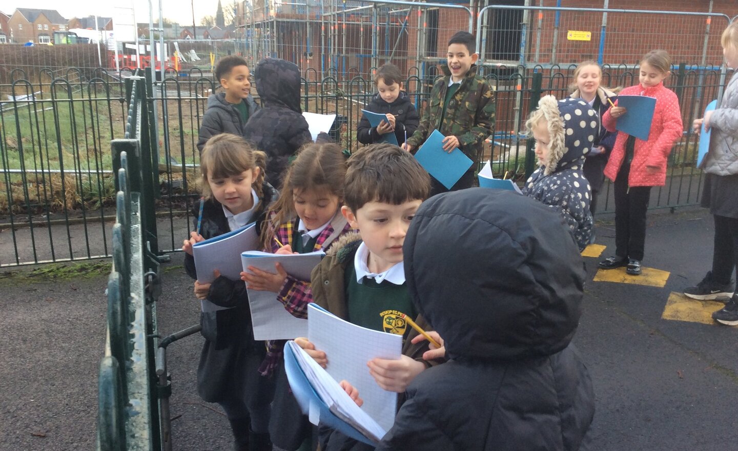 In our English lesson we used the outside to find objects to write similes about. Here are some that we came up with: