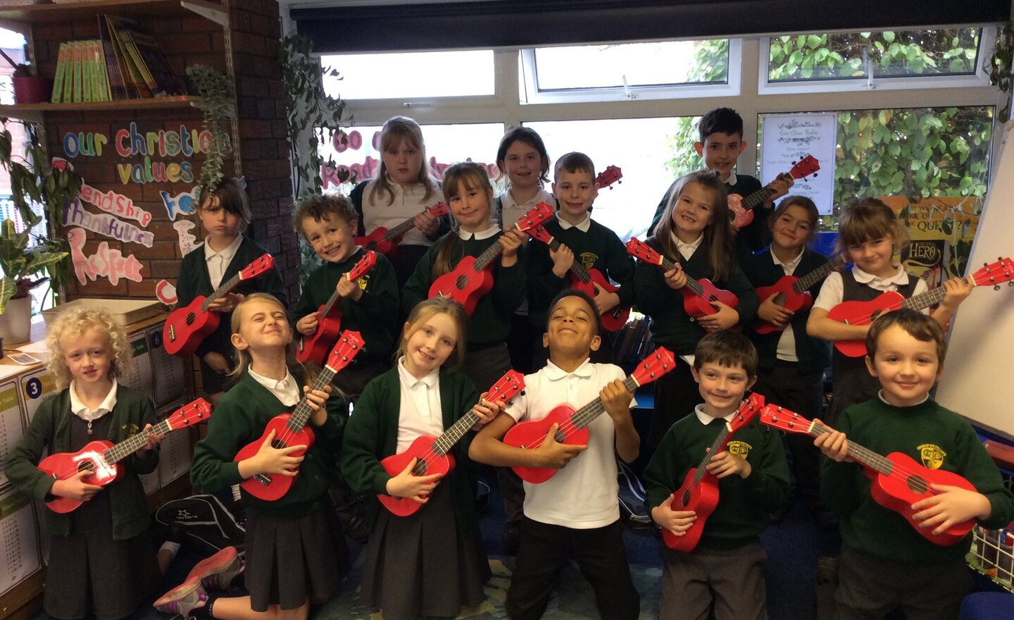 Middle school have had an exciting music lesson this week - unveiling the shiny new ukuleles and having the first try with them!