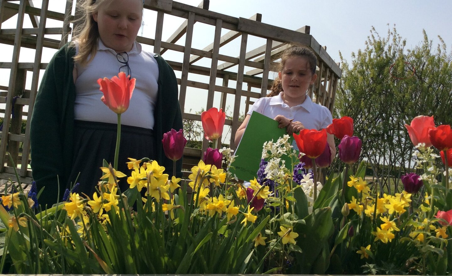 During RE, the children considered the beauty of the world around them and linked this to the creation story. They explored the playground and outdoor areas for things that they found particularly interesting or pretty and wrote about them.