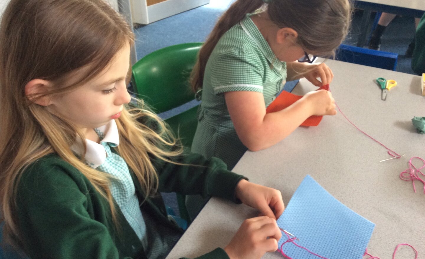 The children have been learning different stitches to use in their DT project. They have had a try at the running stitch, the backstich, the overstitch and some even tried the tricky blanket stitch!