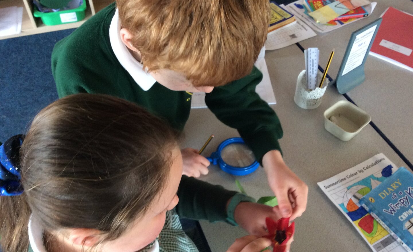 This week, we wanted to investigate what a flower was like. We began by completing diagrams in our books and labelling each of the components.