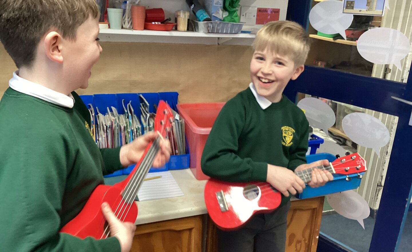 This week, we had our first chance since September to have a try on the ukuleles. Middle school were brilliant listeners and picked lots up very quickly. We began by introducing the musical terminology needed with string instruments, then learning to hold them correctly.