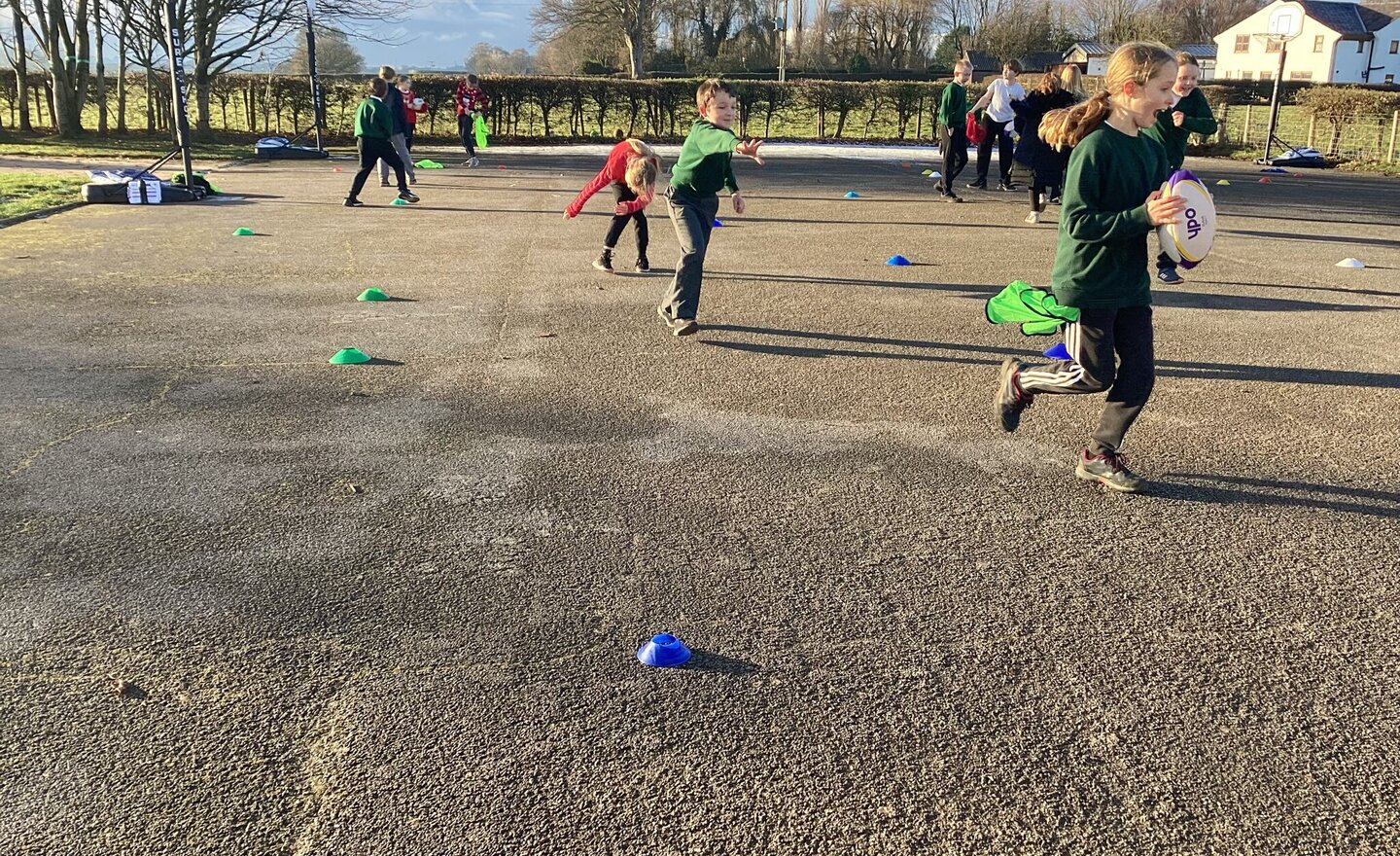 Learning to send and receive a rugby ball…