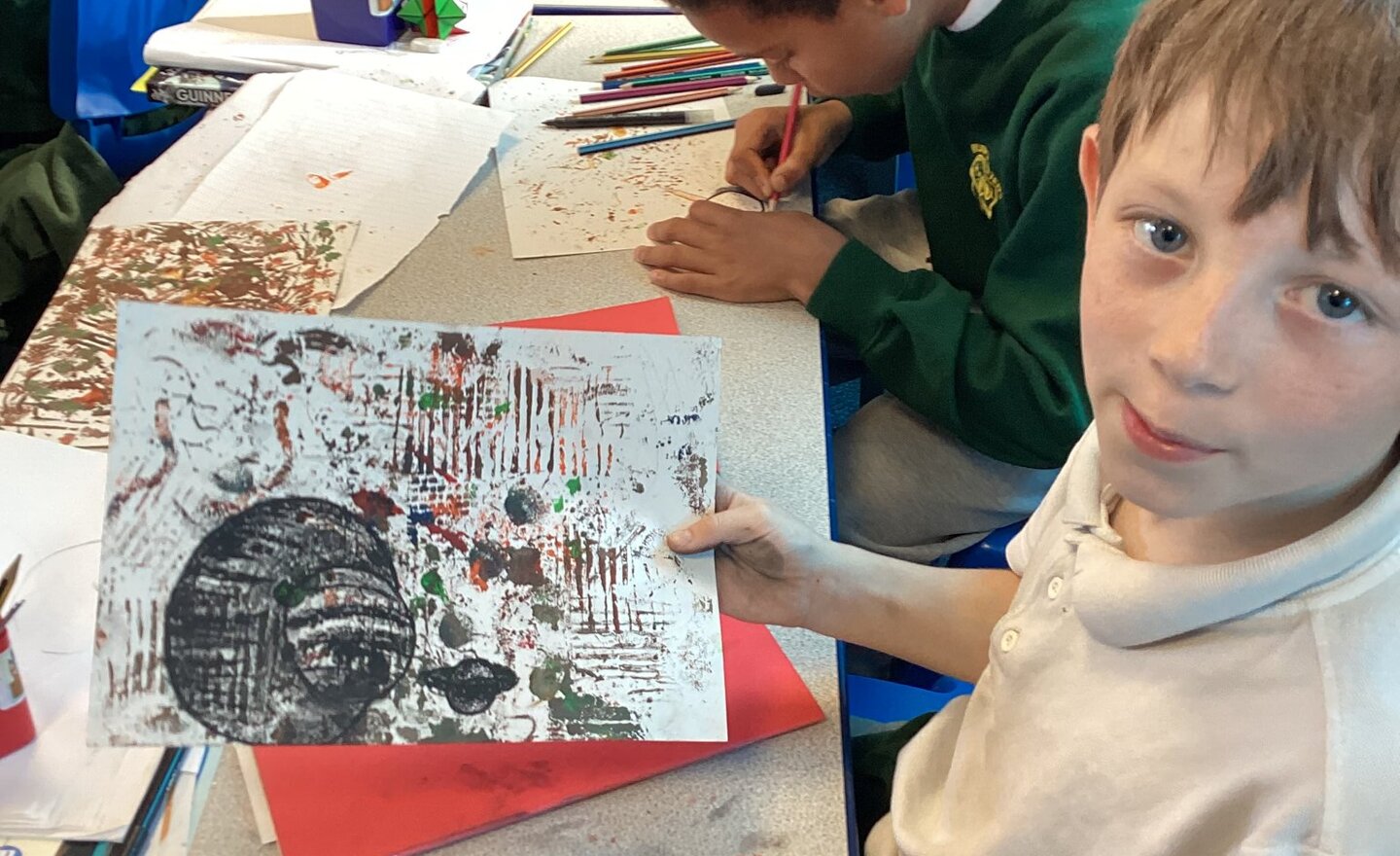 Over the last couple of Art lessons, Upper School have been preparing a space themed piece using a printed background using their own hand made print plate and then adding space themed details with a different media such as chalk, charcoal, pastels and pens. The gallery shows the process the…