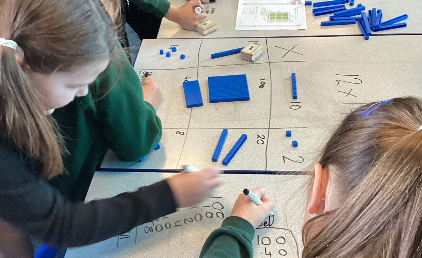 Upper School used the base ten resources to explore the different parts of written multiplication questions (2-digit numbers by 2-digit numbers).