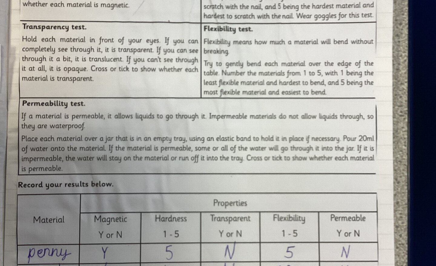 Science- Testing Properties of Materials