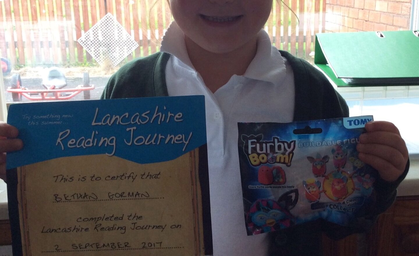 Well done Bethan! Bethan completed the Lancashire Library's reading challenge during the holidays. That must be why she has come back to school as such a great reader. As promised she got an extra prize from school as a reward.