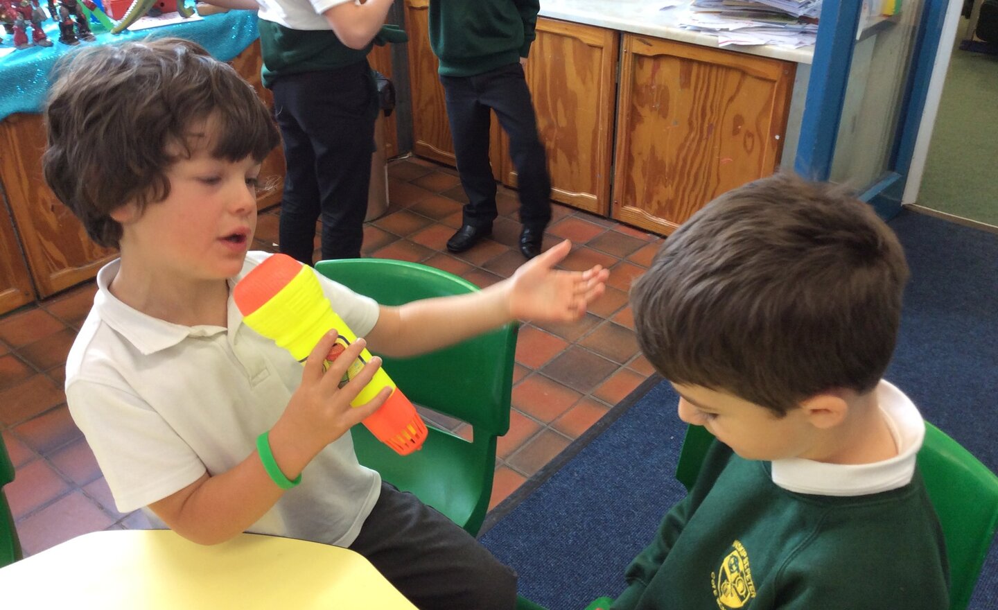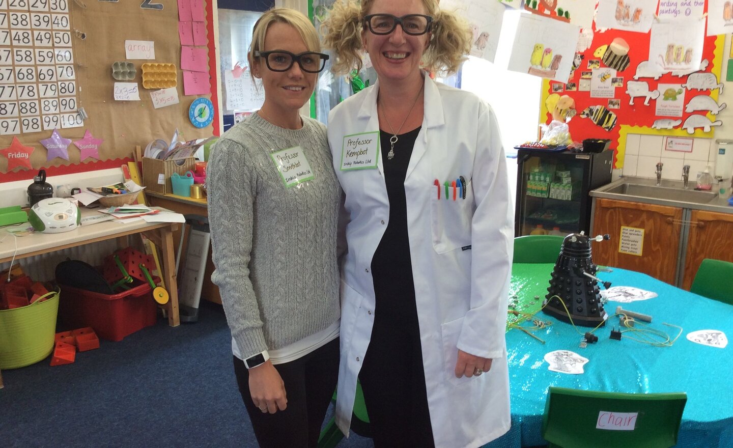 This afternoon the children had a visit to the robotics factory and met Professors Kempbot and Smith! The children talked about what they already knew about robots and helped Professor Kempbot by designing some new robots for the factory. It was great fun.