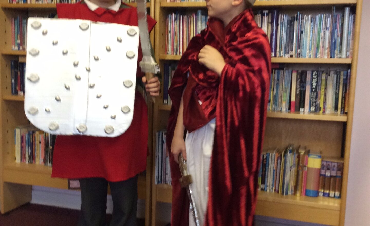 Benjamin came dressed as a Roman soldier and is guarding Sean who is dressed as King Herod.