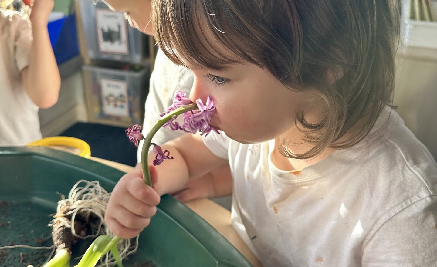Each term we dip in and out of science learning about plants, observing what is growing at different times of the year. The children build up their knowledge and understanding of seasonal changes and the different stages of, and needs for, plant growth.