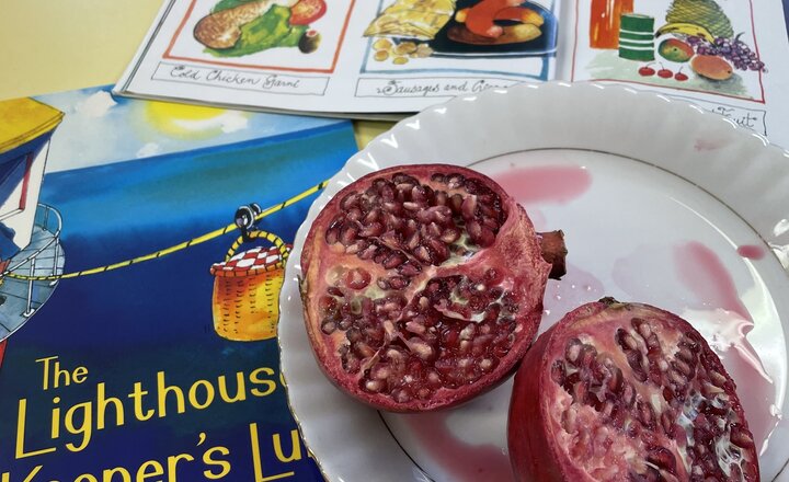 Tasting pomegranate.