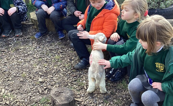 Maddison and Reagan’s lamb visits Lower School.