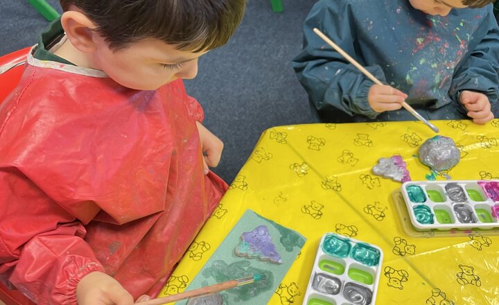 Painting our clay pinch pots and tree decorations.