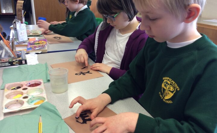 Middle school creating cave paintings