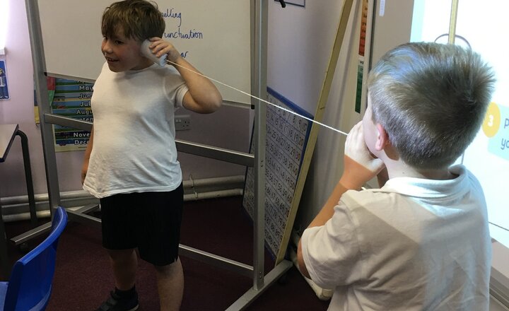 The children in Upper School have been learning about the pitch and amplitude of sounds. They made cup and string telephones to test how sounds travel.