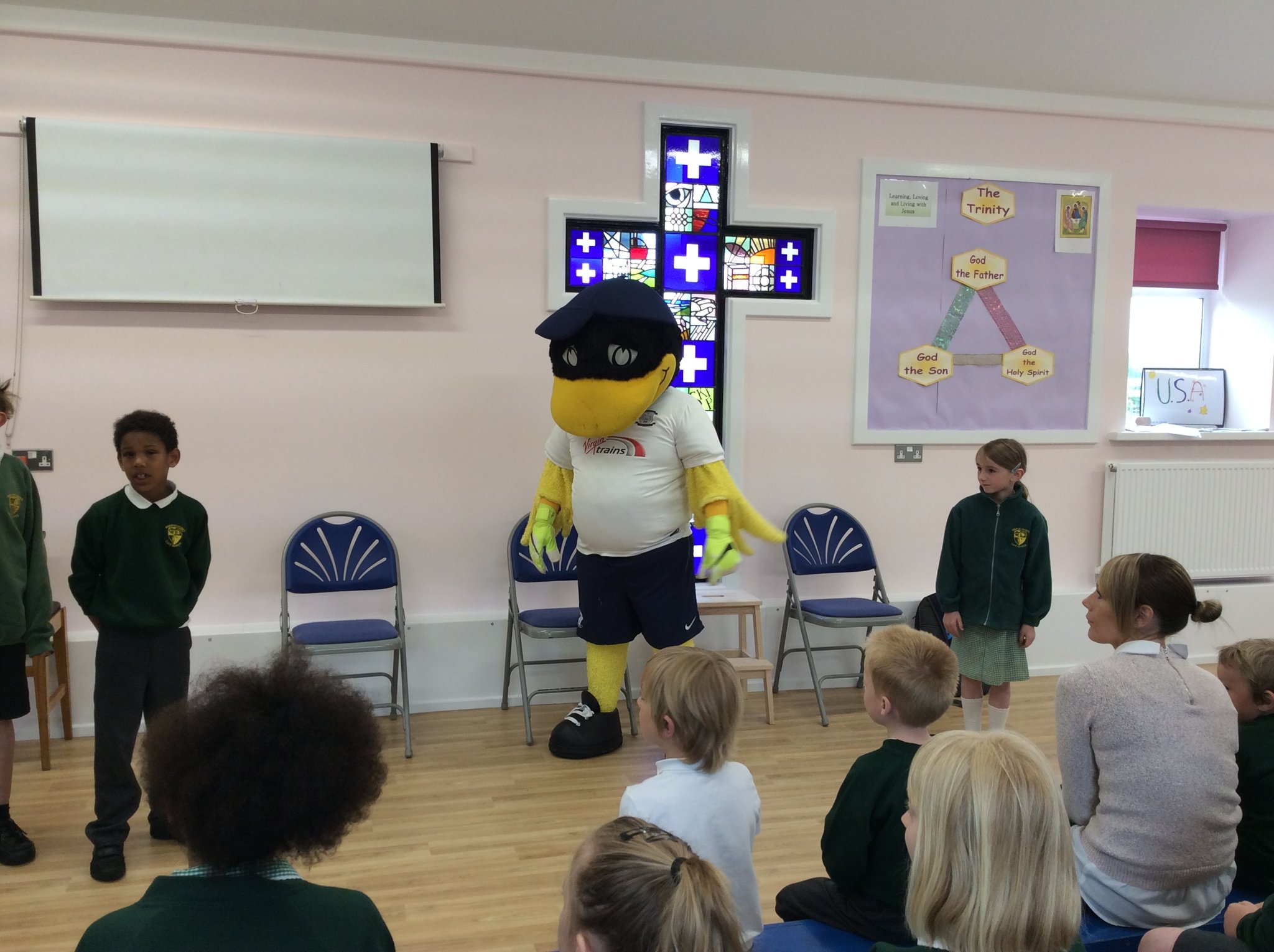 Jack Stevens and Deepdale Duck from PNE visited school on Friday 20th May to talk about a possible new after school football club.
