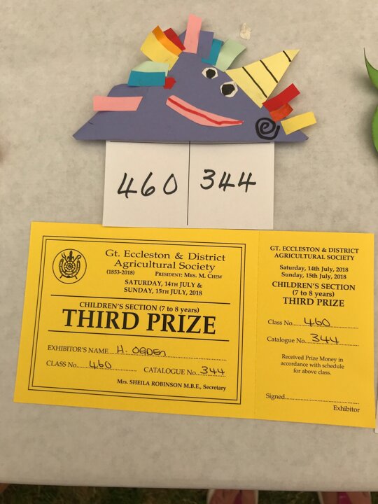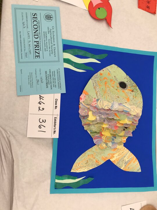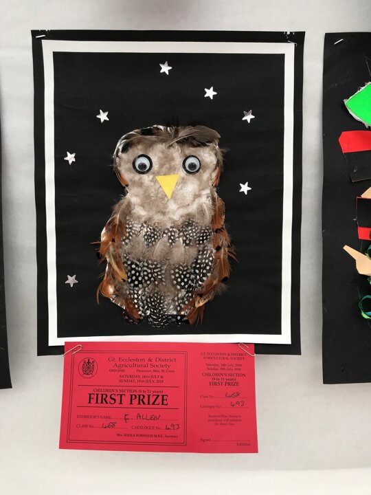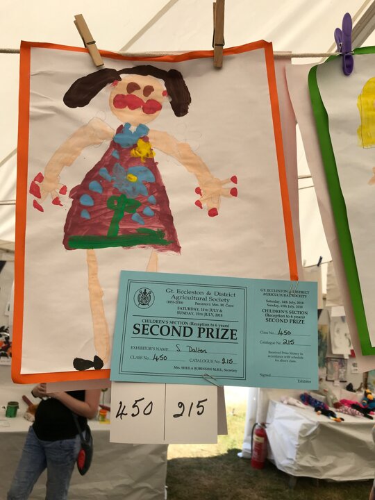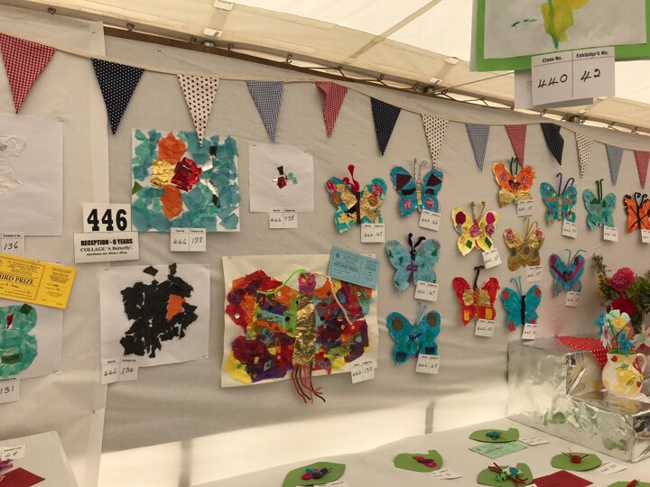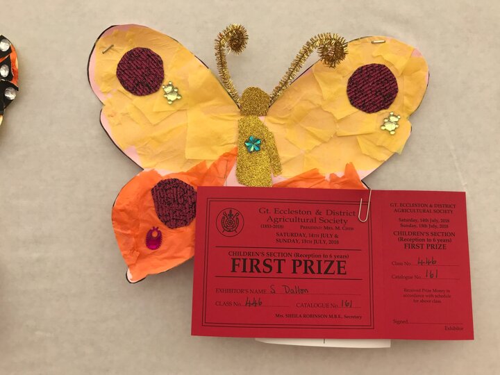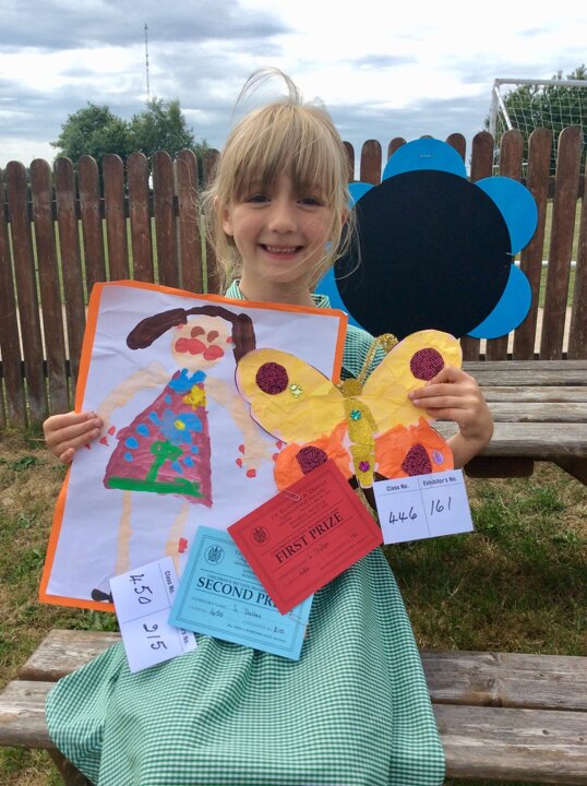 Sophie Dalton in Year 1 who won first prize with her collage butterfly and second prize with the painting of her mum.