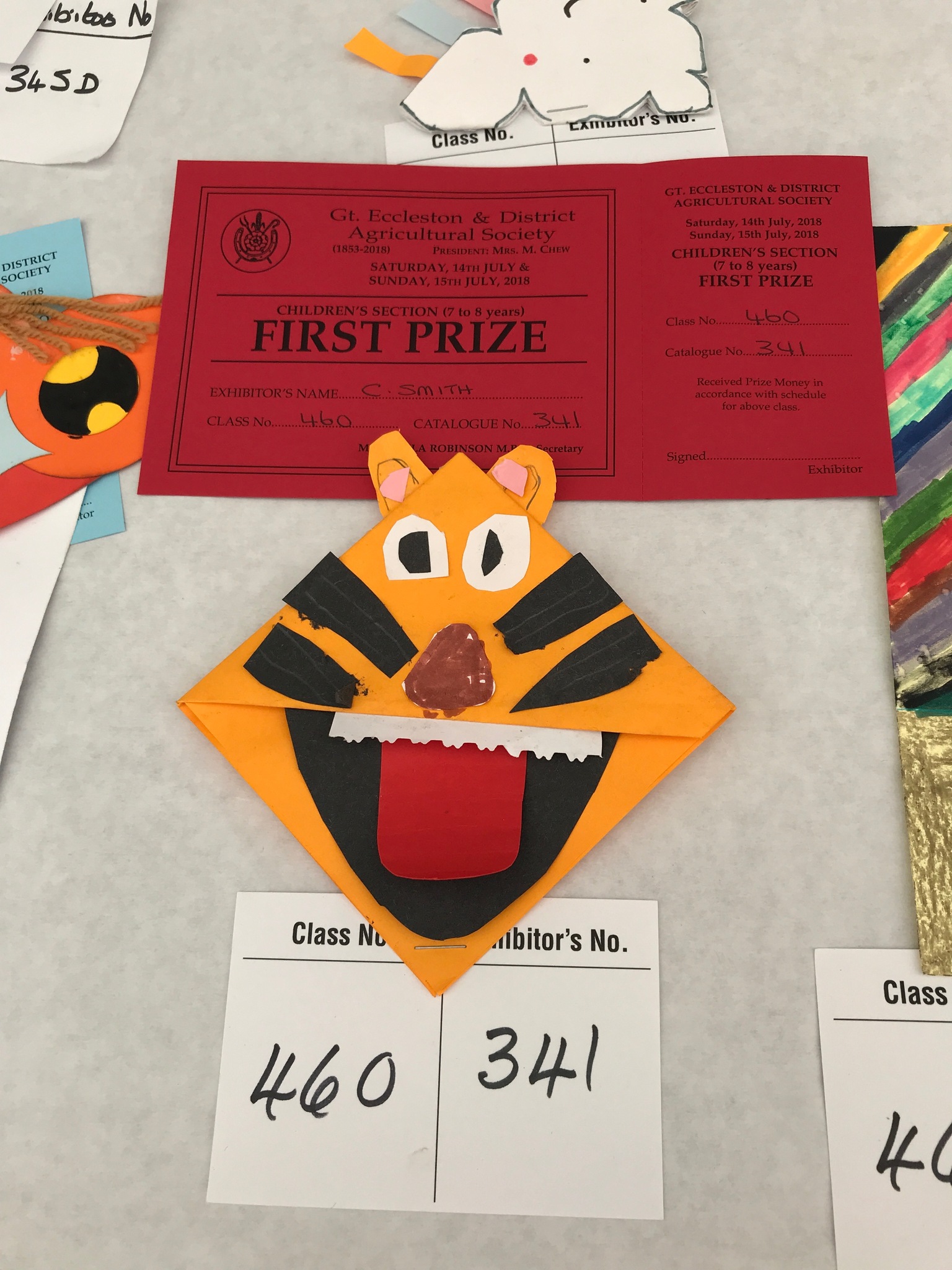 Caitlyn Scott who won first prize with her tiger bookmark.