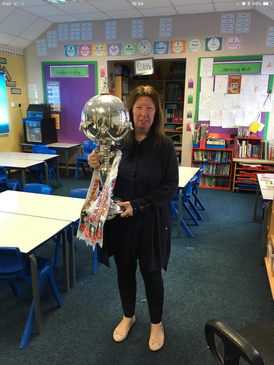 AFC Fylde brought the FA Trophy to Inskip today, we all celebrated with it for a photo and Years 5 and 6 (and a few staff!) were allowed to carefully hold the VERY heavy silverware!