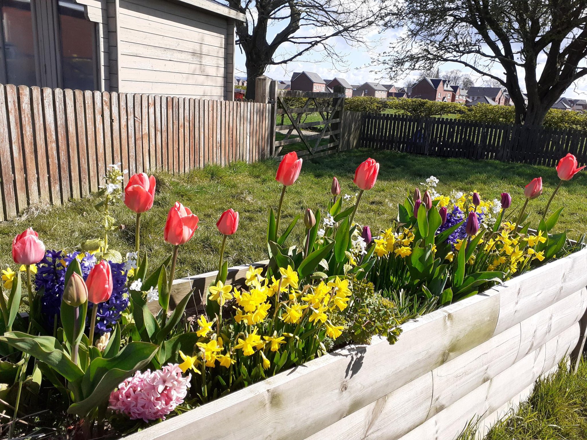 The spring bulbs we planted last autumn are looking wonderful this morning ready to welcome everyone back for a new school term tomorrow (12th April) at 8.50am.