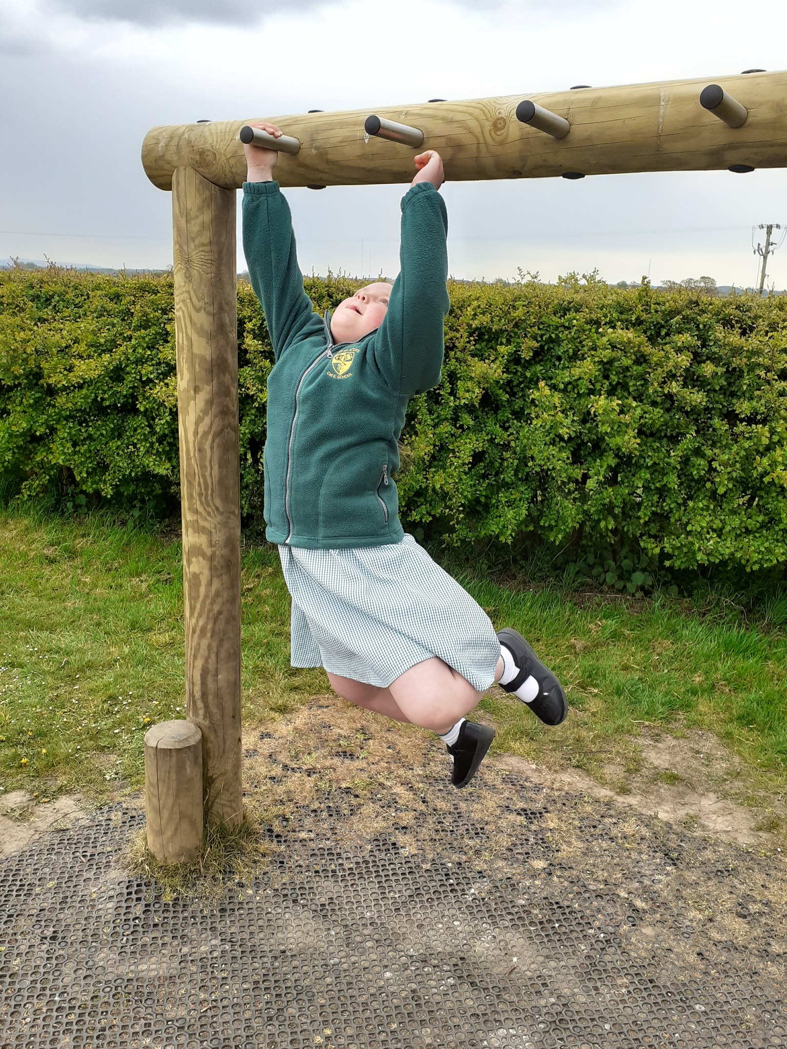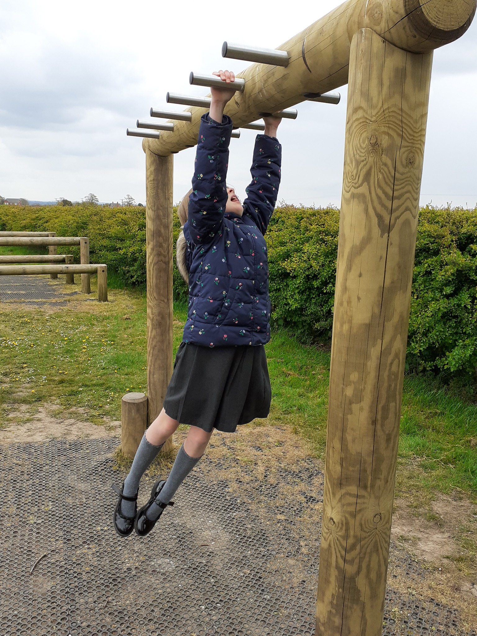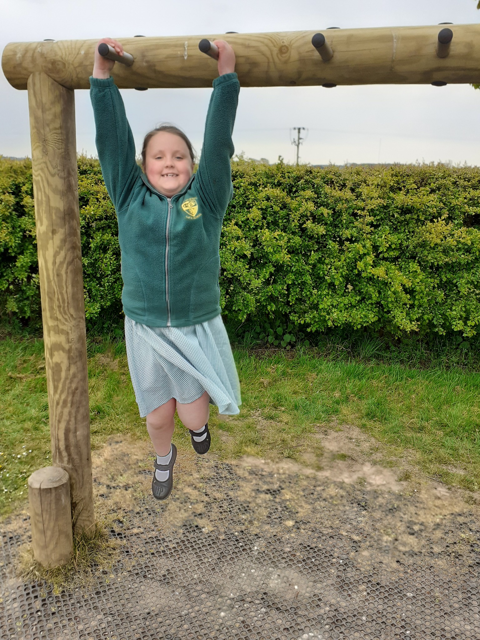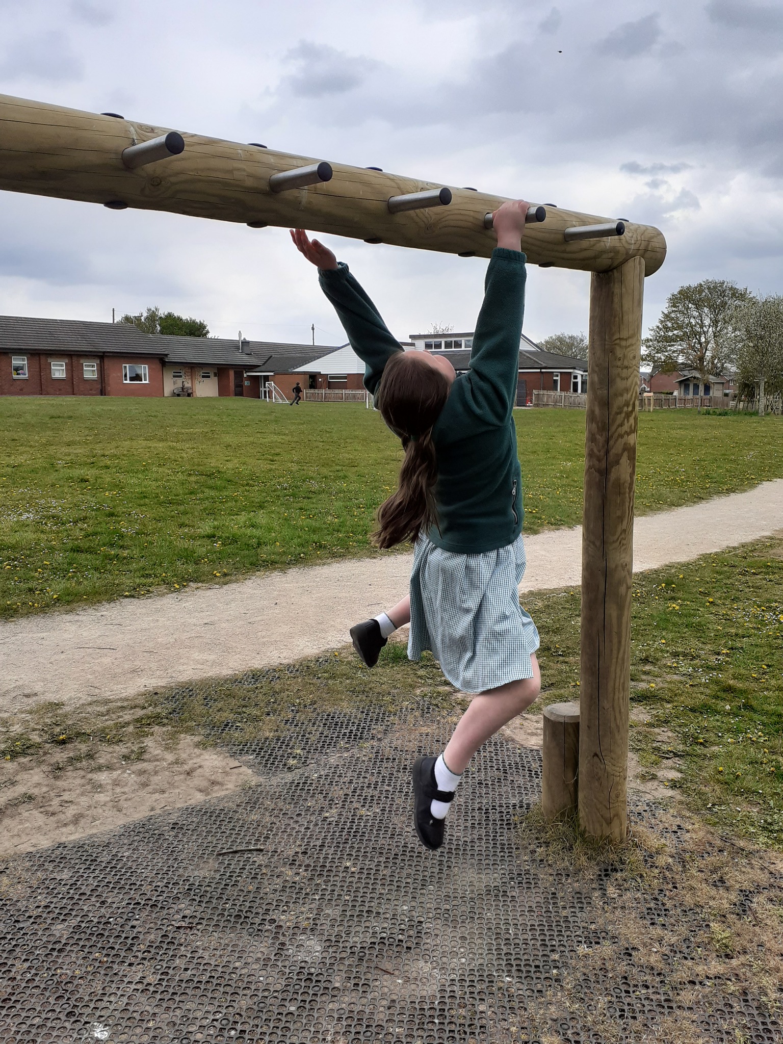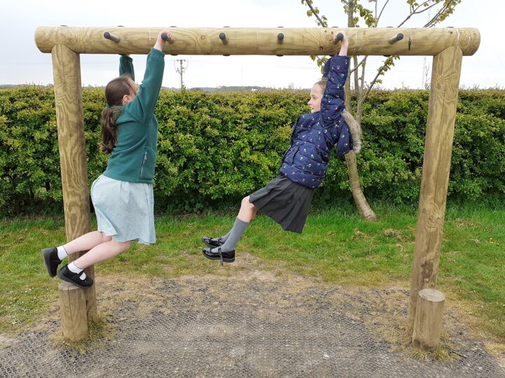 Hi, my name is Bethan and I'm with my best friend Claire, and most days we go on the monkey bars at our school. This is an amazing game to play with your friends because you have something in common. You can play this game alone, but it is way more fun with your friends because you can give each other challenges. We do the monkey bars at playtime and during brain breaks. When you get to the end you feel good for yourself because you can achieve something. This game brings your friendship and trust together. We recommend this to all schools and all ages because it makes you strong.