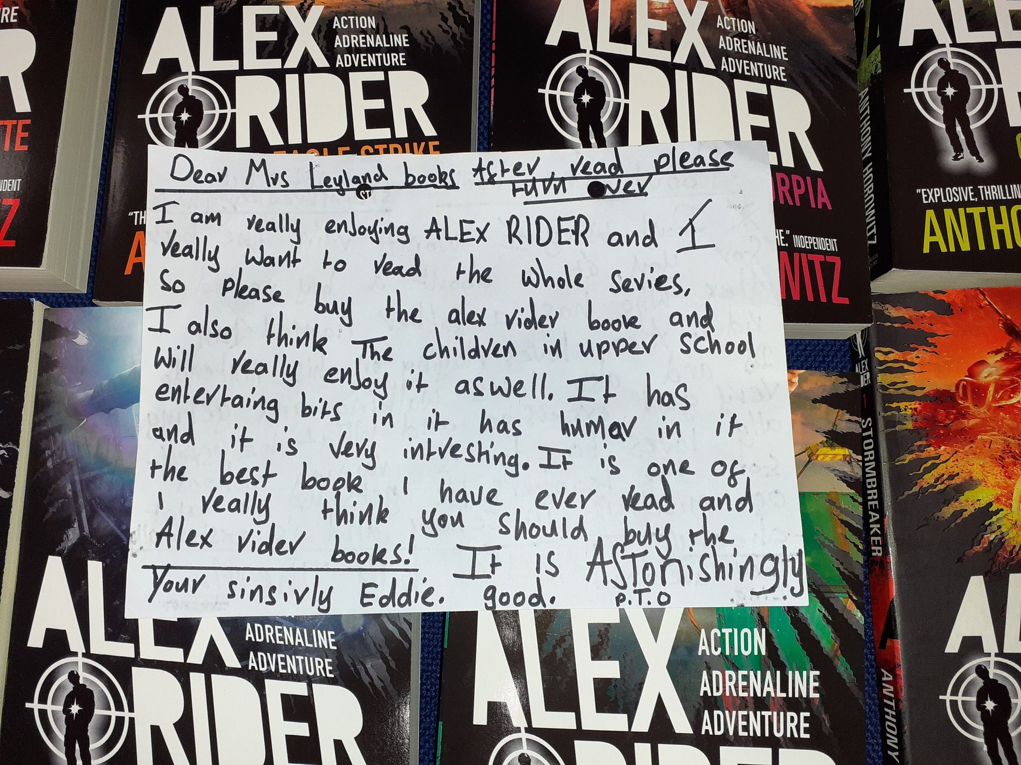 20 January 2022 Eddie requested that we buy the Alex Rider series of novels for his classmates to read. Take a look at why he recommends these books written by Anthony Horowitz. Eddie's Book Review