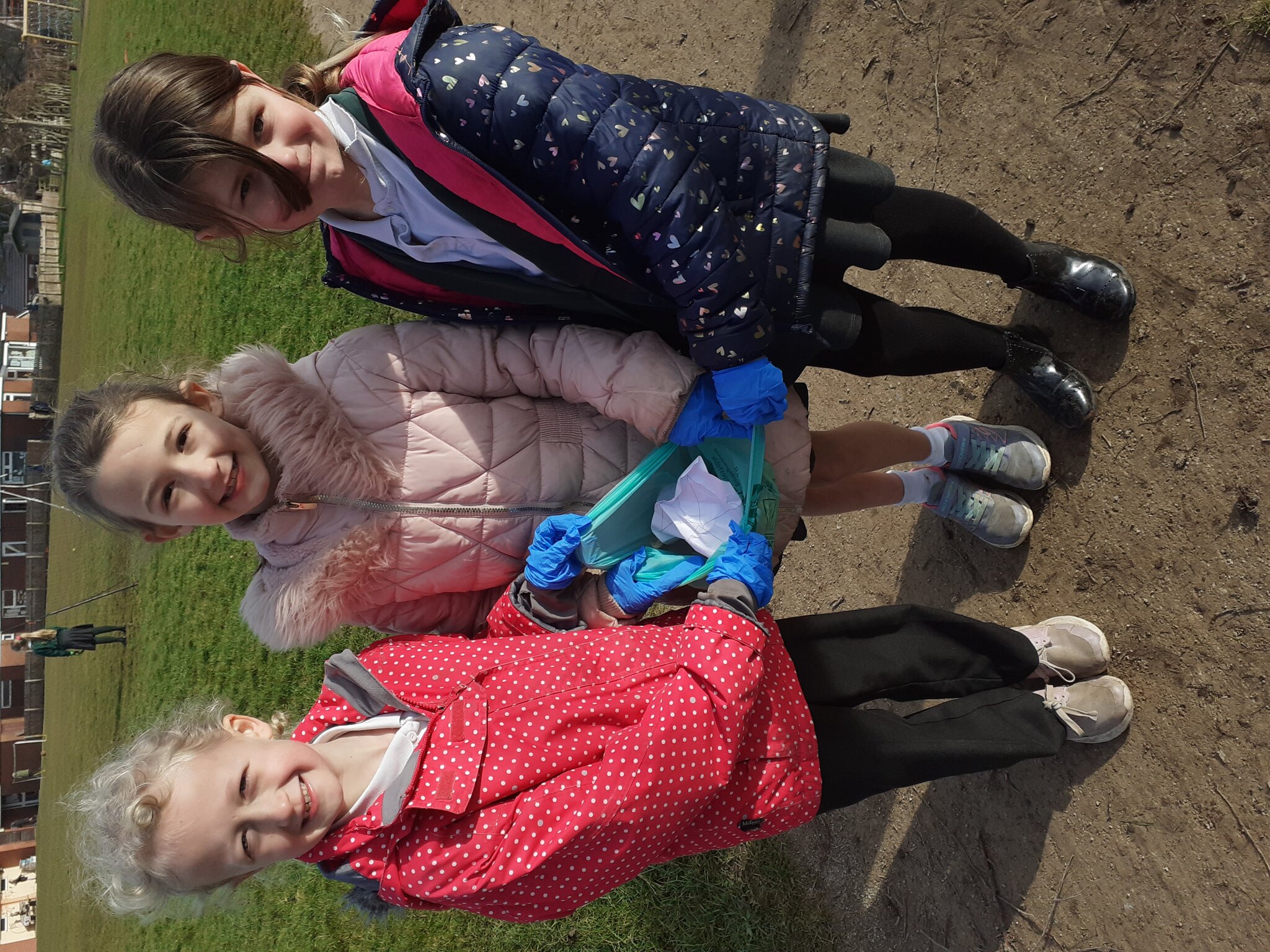 These three girls are advocates for change! They noticed that sometimes there are bits of litter in our grounds so they decided without being prompted to do something about it. They got gloves and a bag and set off collecting.