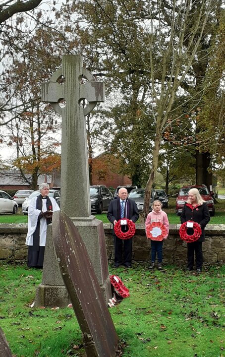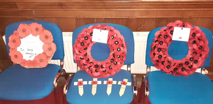 We were invited to attend the Remembrance Day Service at St. Peter's yesterday. The service was lovely and Maddison represented our school walking up the aisle with our homenade poppy wreath alongside the Church wreaths at the beginning of the the Church service and then laying it on the war memorial after the service. In the churchyard she read out some lines beside the vicar to the whole congragation and then several of our pupils laid small wooden crosses on the war graves in our churchyard. It was a very moving morning.