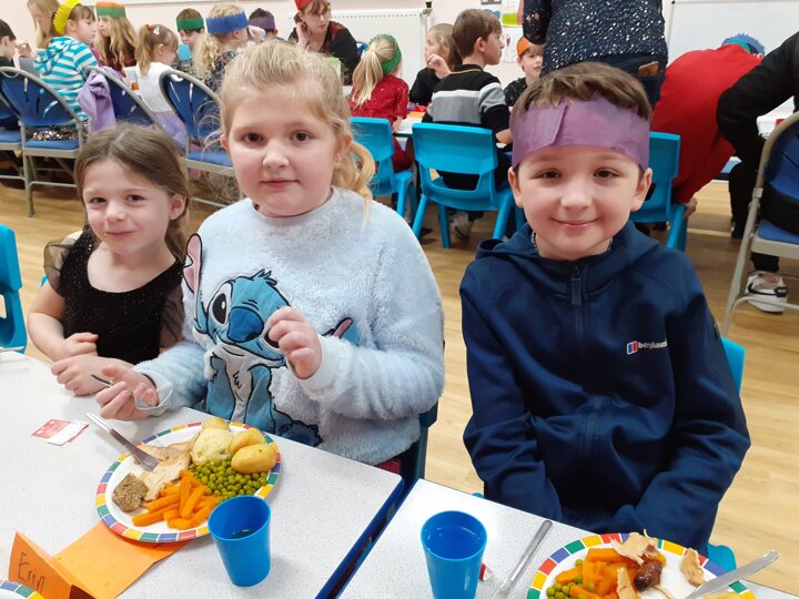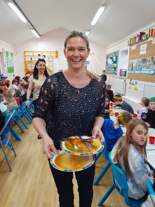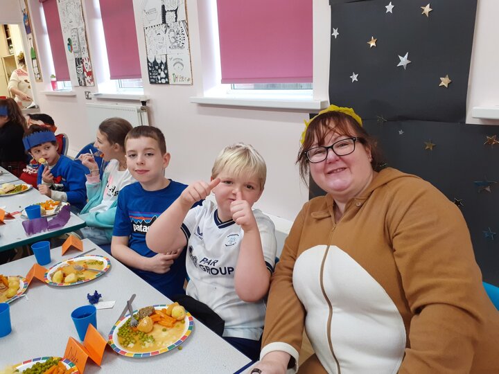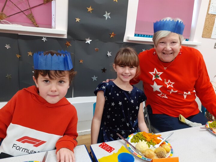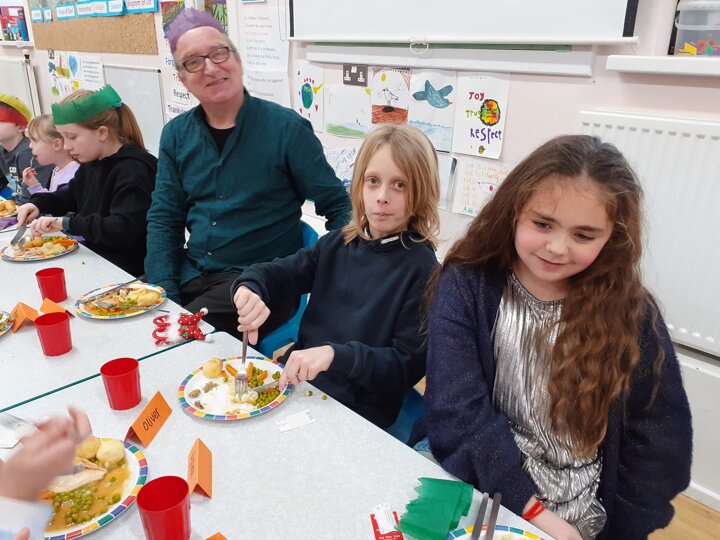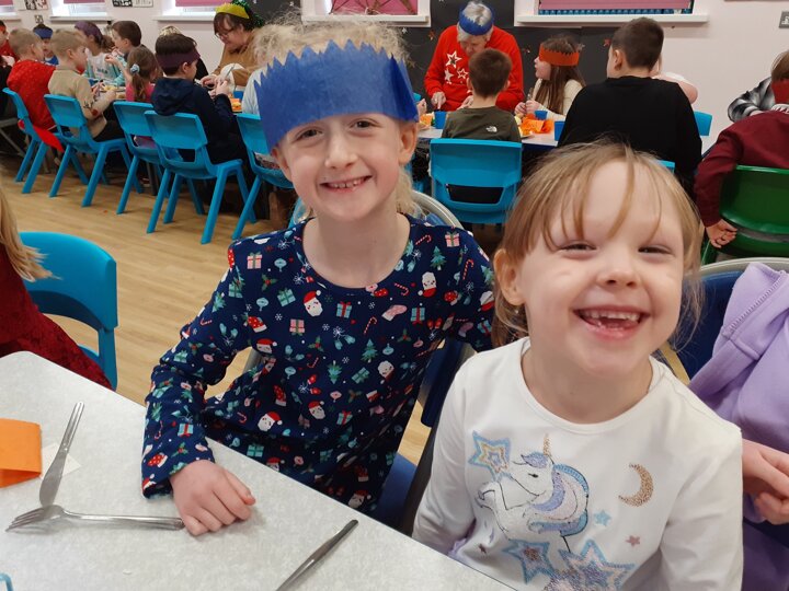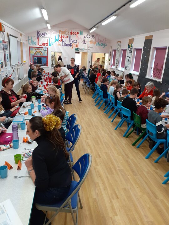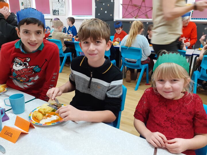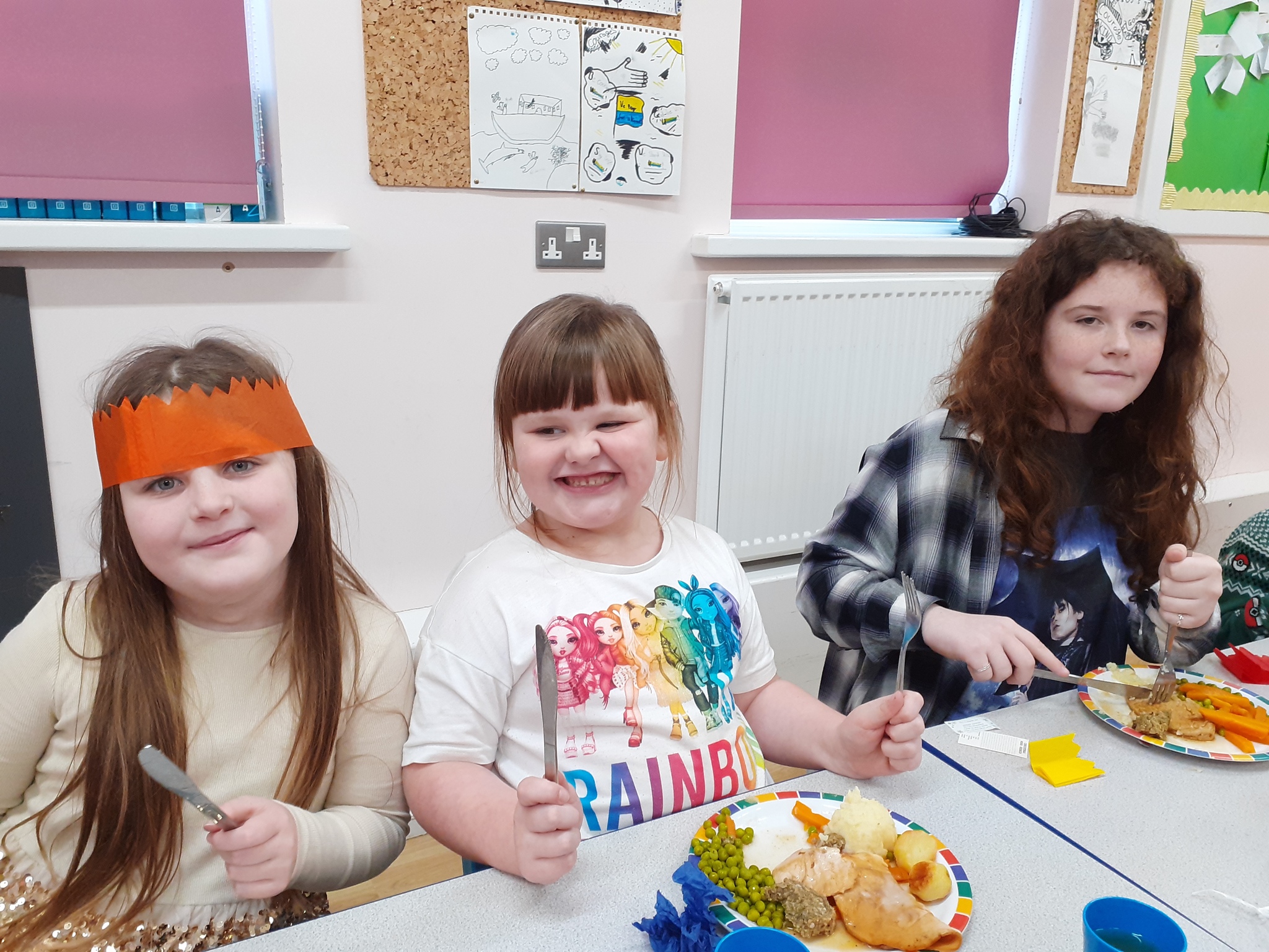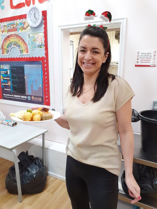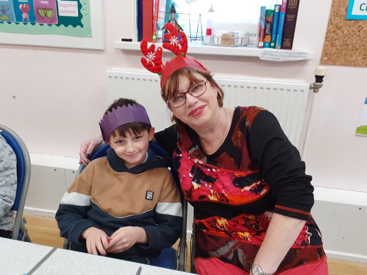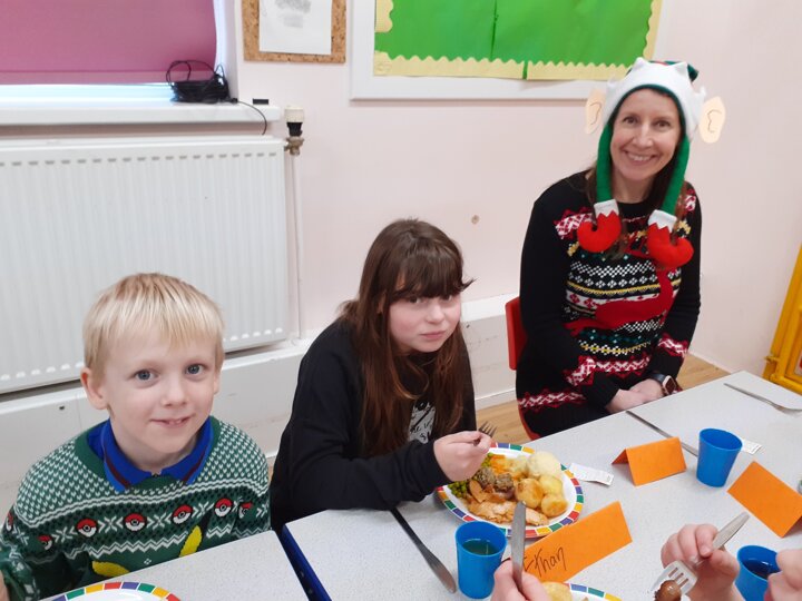 What a fun Christmas Dinner we had together today! As is traditional all the pupils, staff and volunteers sit down and eat a meal together. We can only do this because of the kindness of our Friends association who decorate our party tables, provide crackers and serve the food to everyone at the tables. You can see in out photos the four lovely Friends who worked hard today to make this year's Christmas dinner a real goody.