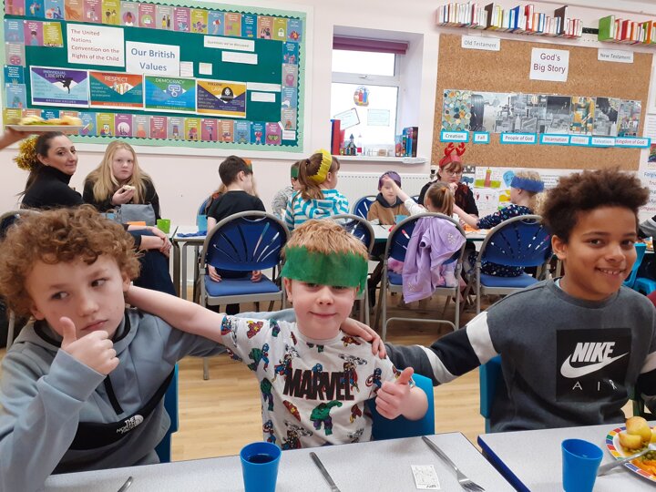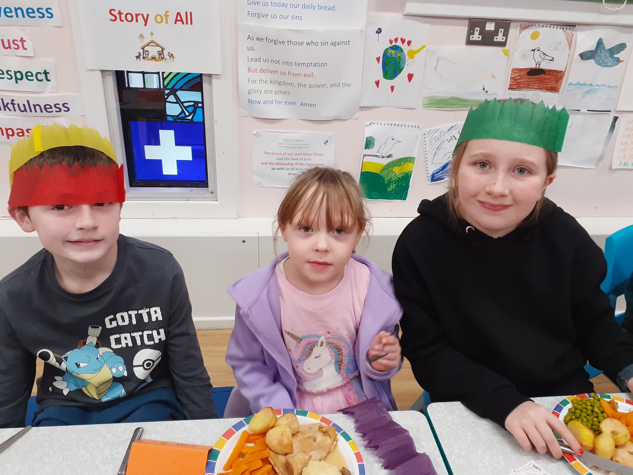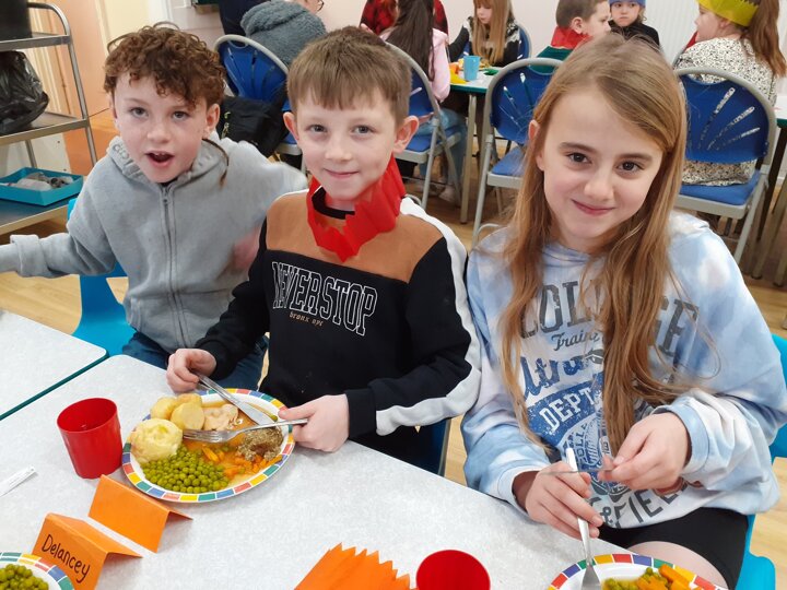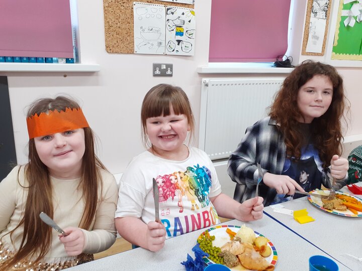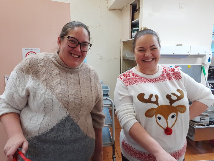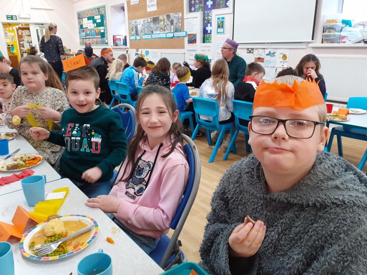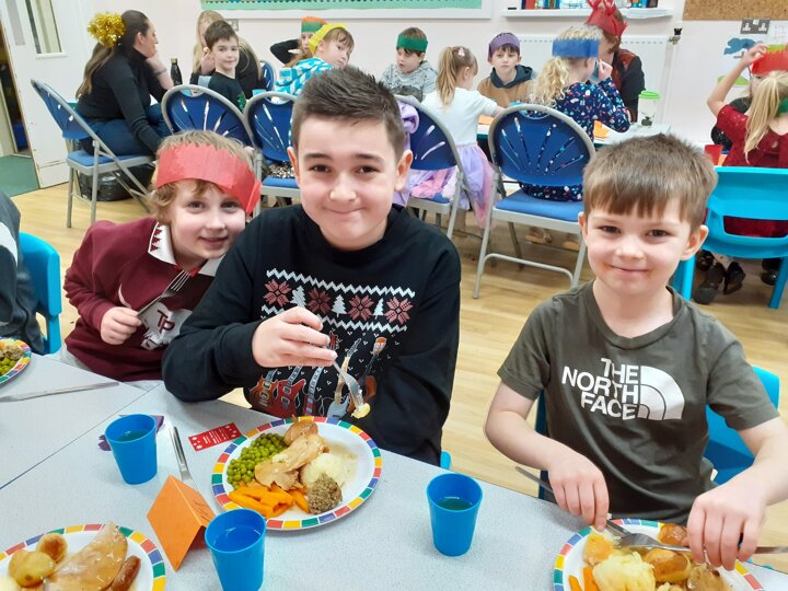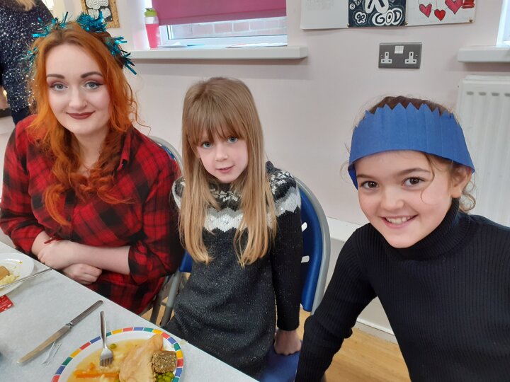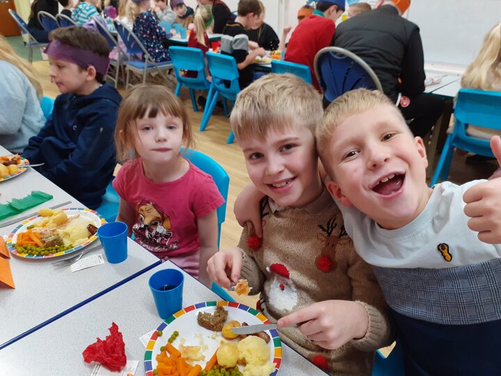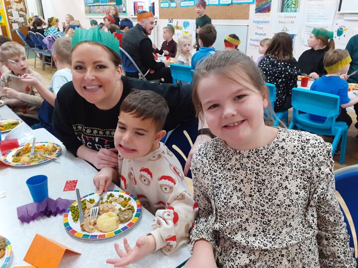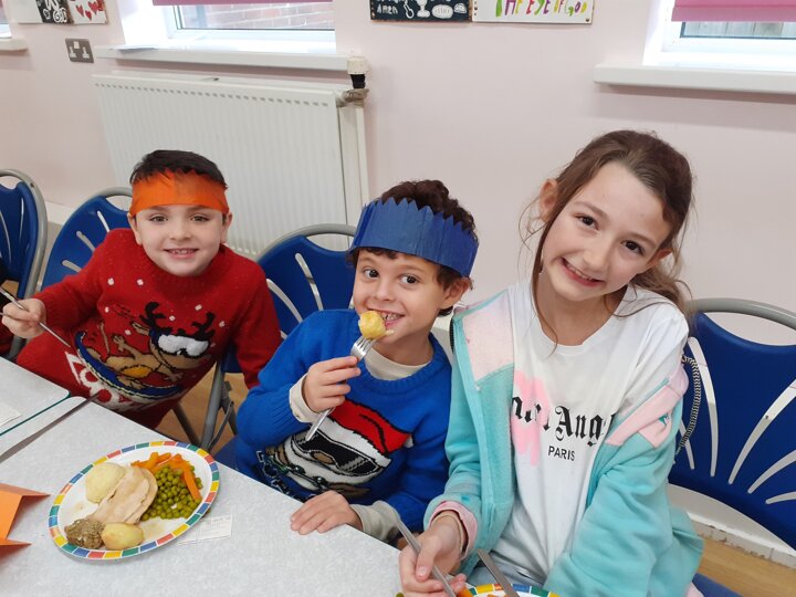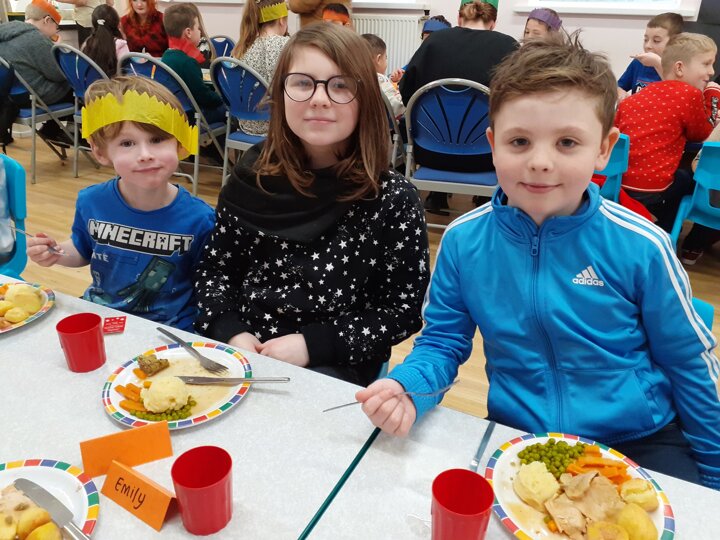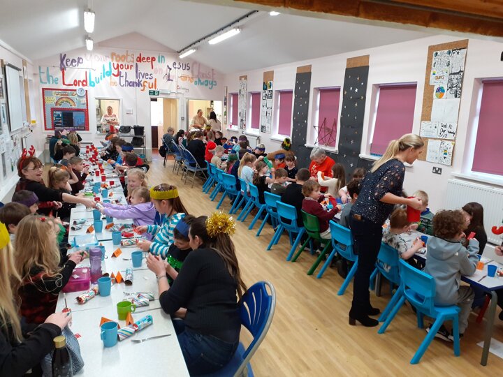 What a fun Christmas Dinner we had together today! As is traditional all the pupils, staff and volunteers sit down and eat a meal together. We can only do this because of the kindness of our Friends association who decorate our party tables, provide crackers and serve the food to everyone at the tables. You can see in out photos the four lovely Friends who worked hard today to make this year's Christmas dinner a real goody.
