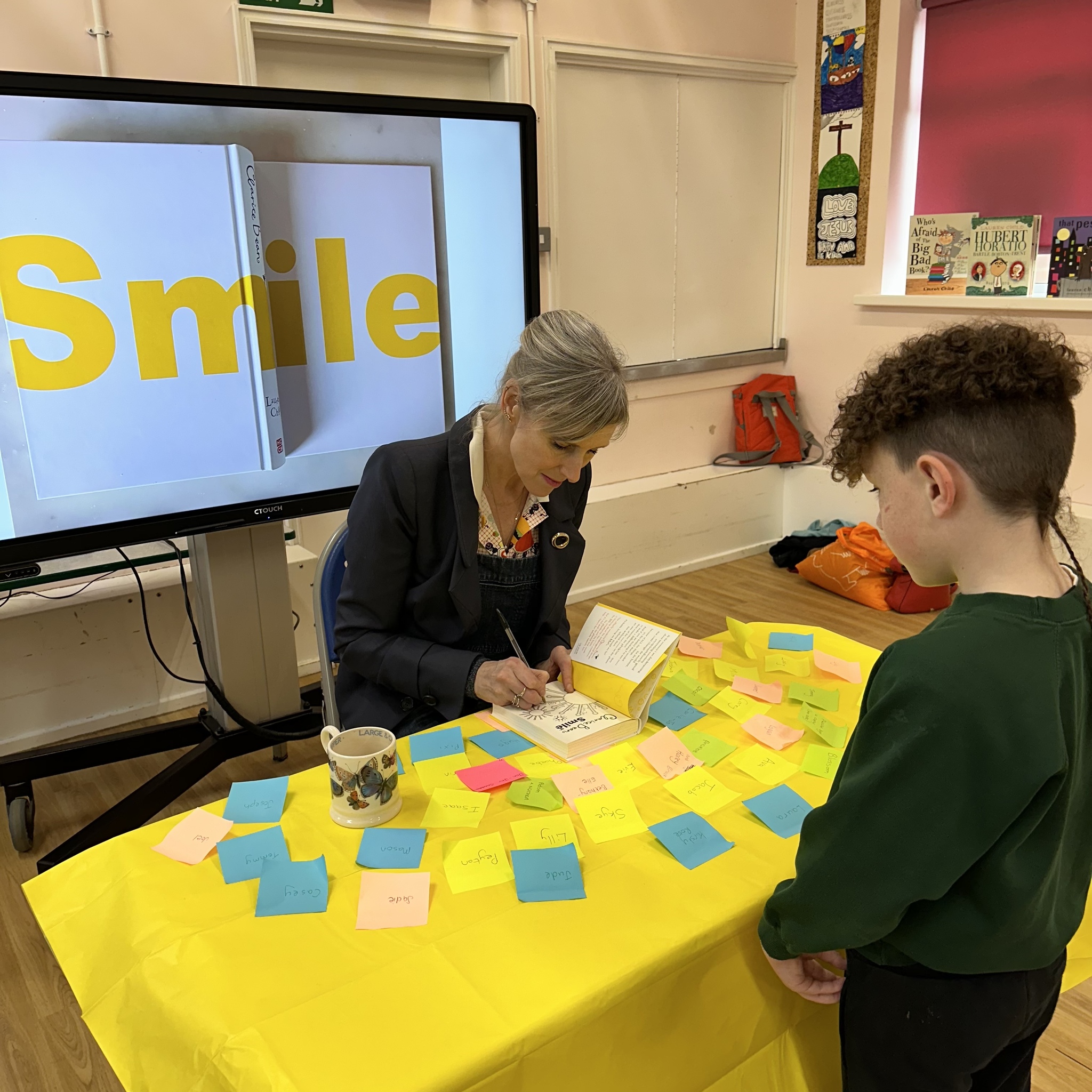 Lauren told us all about her writing, how she creates her books and all about how she wrote Smile. Then the children had the fabulous experience of talking to Lauren individually as they had their books signed by her.