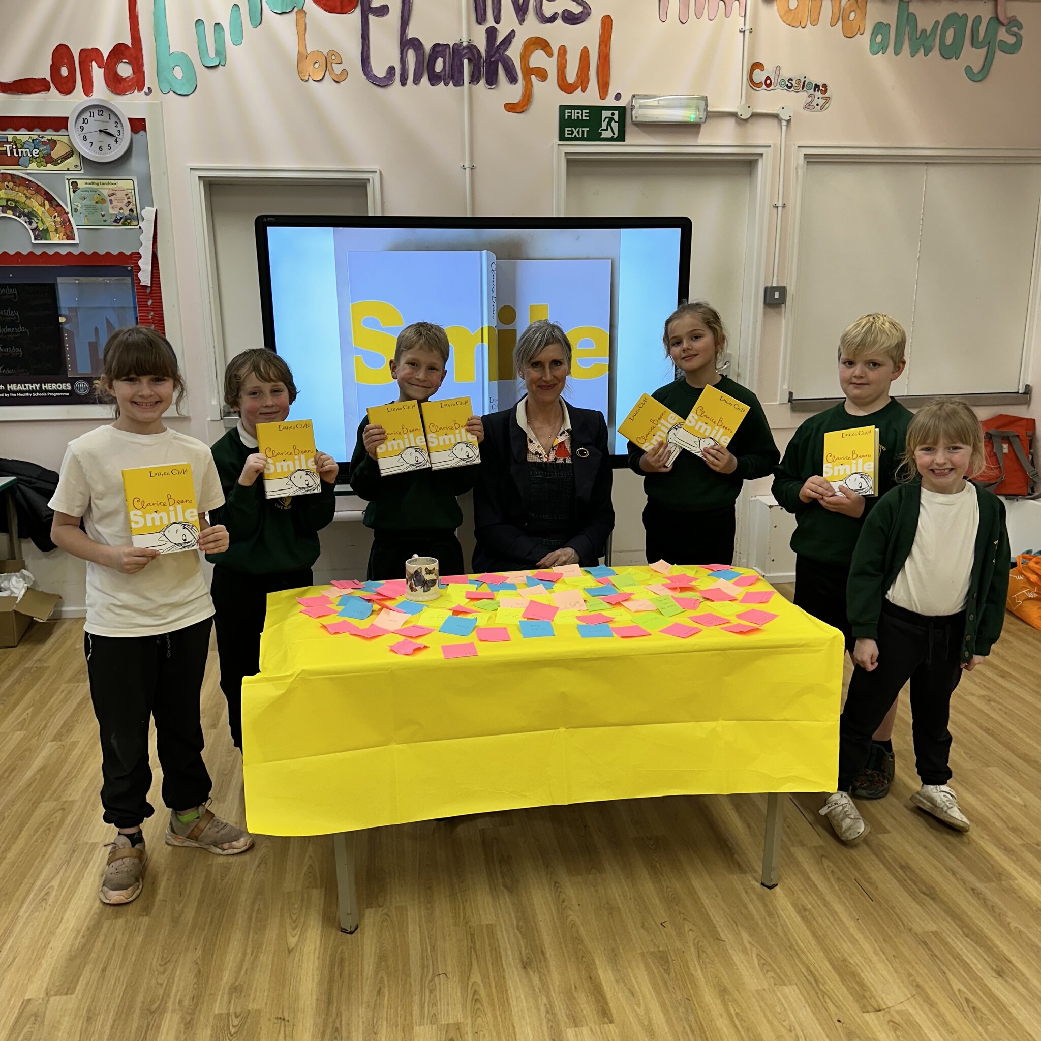 We were extremely lucky to have the award winning author Lauren Child visit us on Thursday with her lastest Clarice Bean novel, Smile. It was such a fantastic afternoon, we welcomed children from St.Mary’s Primary School in Great Eccleston, Treales Primary School, Roseacre Primary from Blackpool and Westminster from Blackpool to share the treat with us.