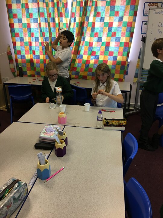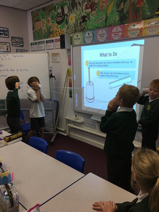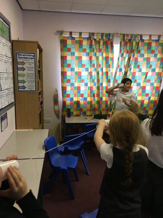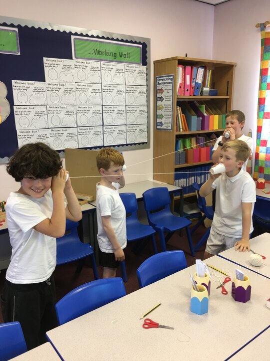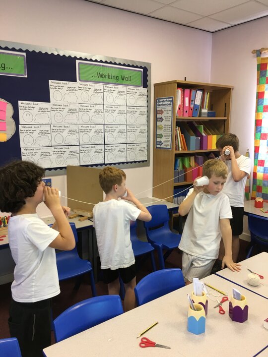 The children in Upper School have been learning about the pitch and amplitude of sounds. They made cup and string telephones to test how sounds travel.